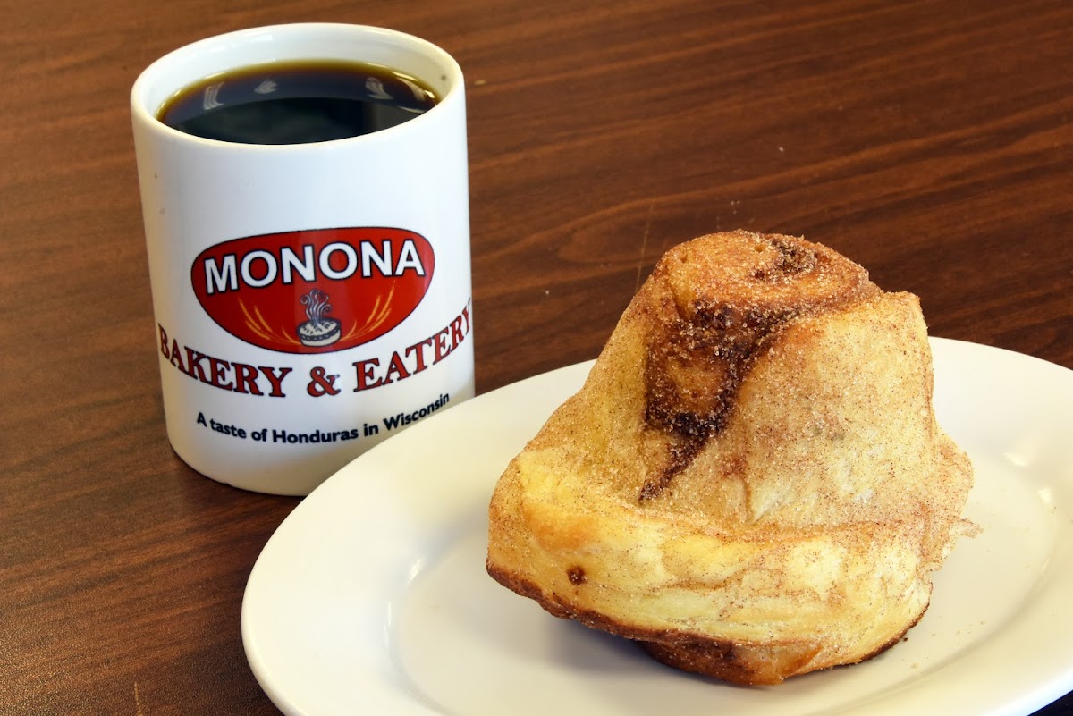 Google Maps led us to a spot across the street from Monona Bakery and Eatery, but we were really happy to look up at the right moment and notice it in its actual location. The woman at the register was friendly and helpful as I wanted a suggestion as Honduran food was new to me. She helped me choose "Plato Típico" with chicken and fried plantains. Delicious! The restaurant is bustling with activity as people walked in for pastries or ordered a meal from their menu full of great choices. You grab a menu, find a table, figure out what you want, and order at the register. Easy and casual. Nice vibe there. I wish we lived closer so we could keep eating at Monona Bakery!